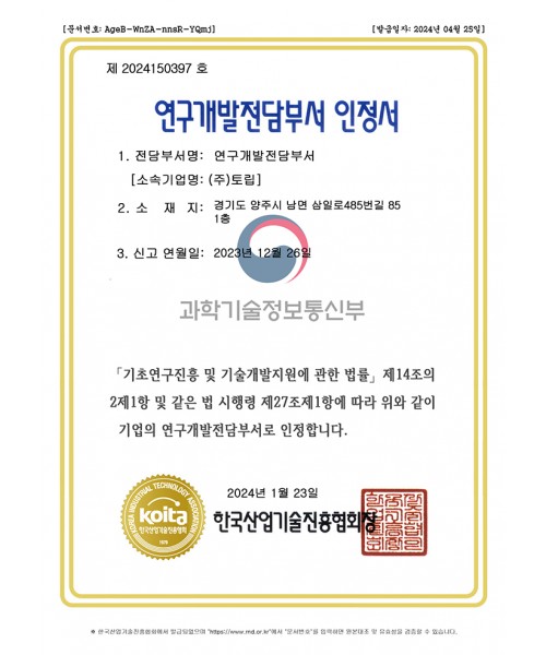 연구개발전담부서 인정서
