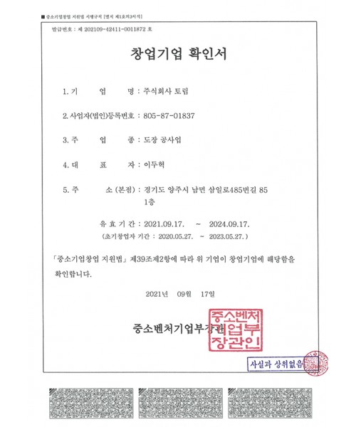 창업기업 확인서