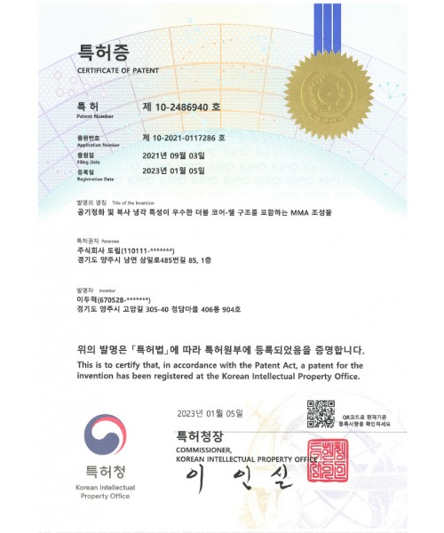 제 10-2486940호 특허증
