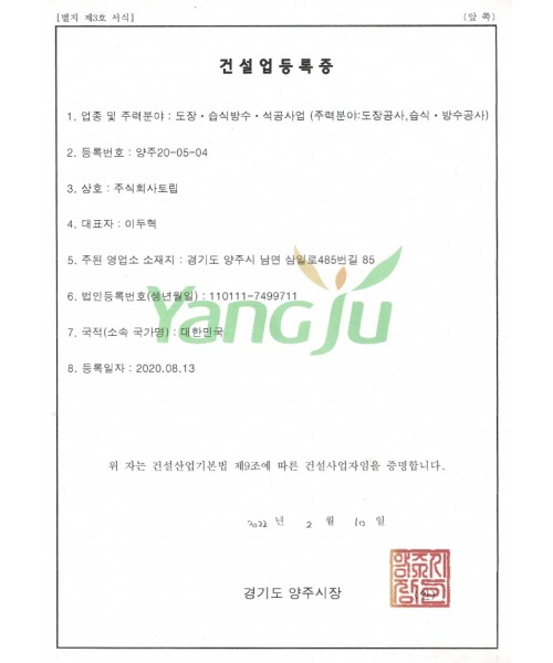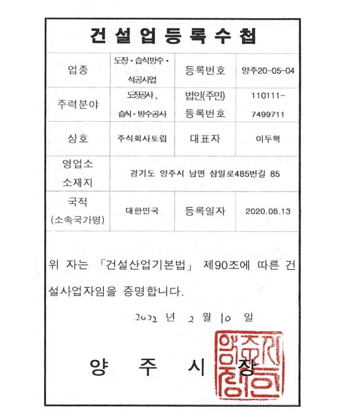 건설업 등록증