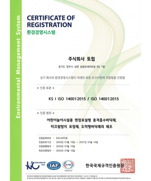 ISO 14001 인증서