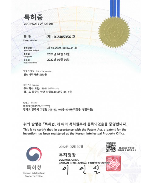 탄성포장재 조성물 특허증