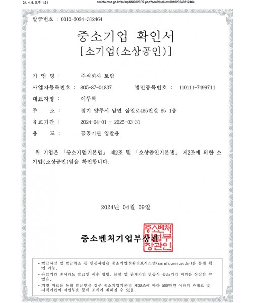 중소기업 확인서